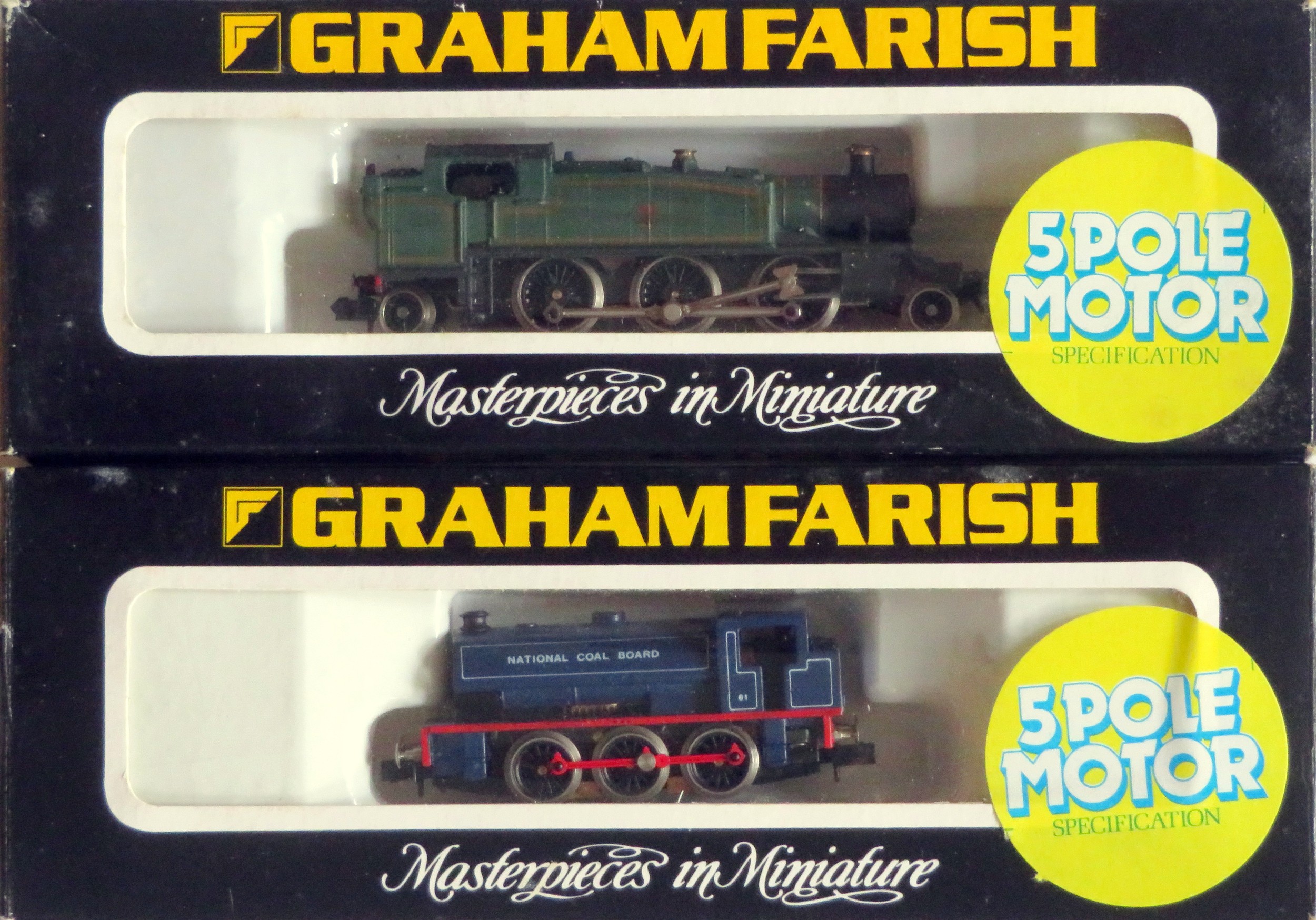 GRAHAM FARISH N Gauge Locos comprising: 1605 2-6-2 Prairie Tank Loco BR green, plus 1017 Class J94 0-6-0 Tank Loco NCB blue. Both Good to Good Plus in Good Plus Boxes (2)