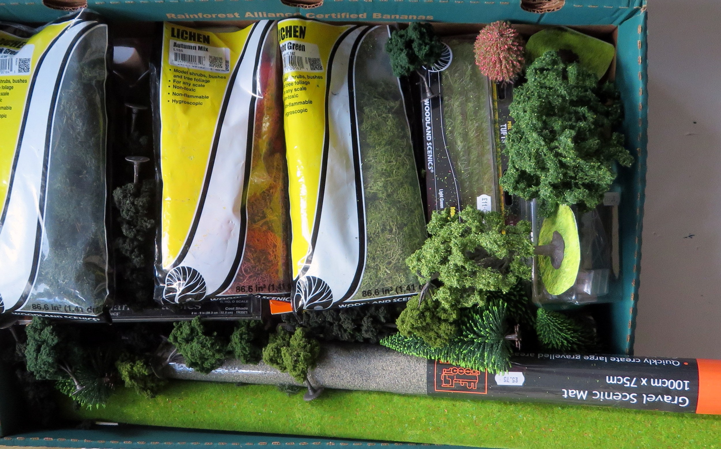 WOODLAND SCENICS / GAUGEMASTER 00 Gauge comprising: Selection of Landscaping Materials to include Trees, Bushes, Grass and Gravel Mats plus others. (Qty.)