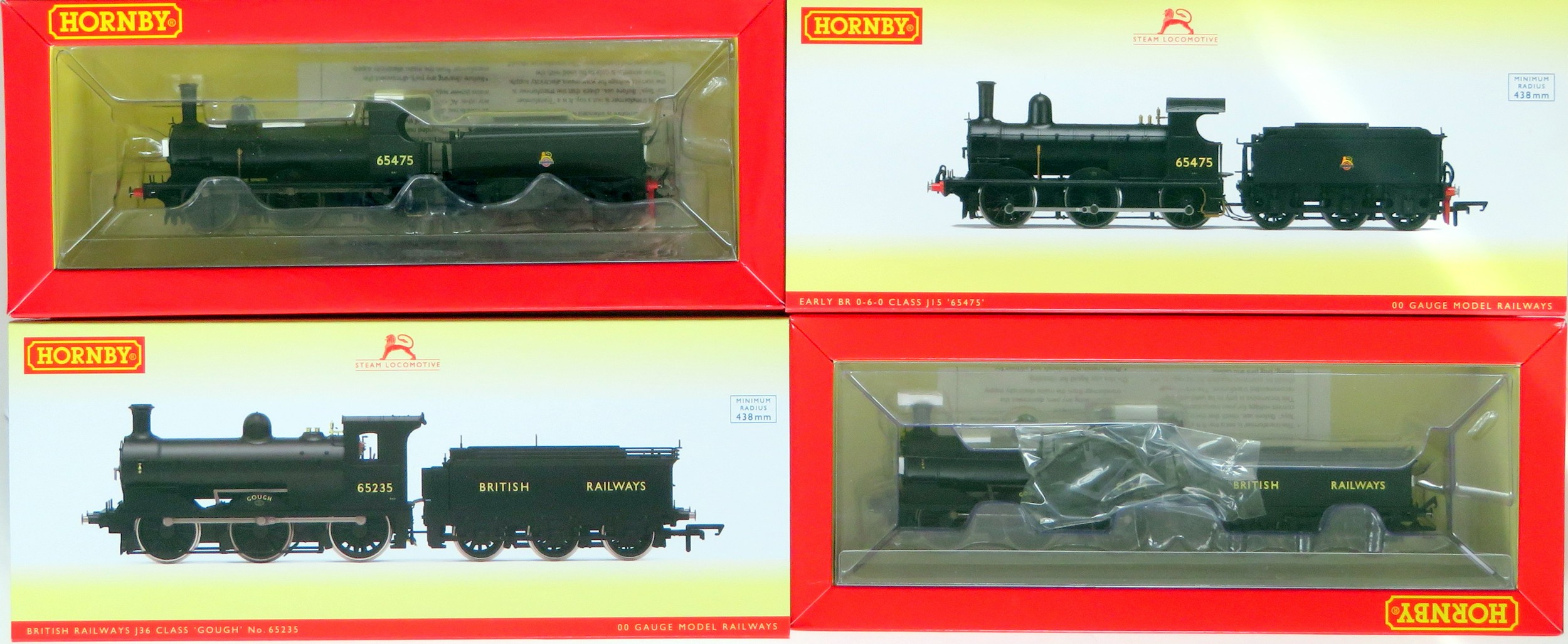 HORNBY (China) 00 Gauge Locos comprising: R3381 Class J15 0-6-0 Loco and Tender No. 65475 BR black early crest, plus R3734 Class J36 0-6-0 Loco and Tender No. 65235 BR black “British Railways” to Tender sides. Both Near Mint in Excellent to Near Mint Boxes with Picture Outer Sleeves and Instructions (2)